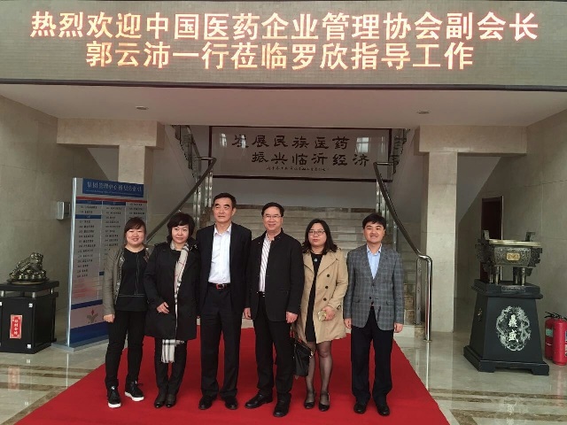 圖為中國醫(yī)藥企業(yè)管理協(xié)會會長郭云沛(左三)一行來我公司指導(dǎo)時(shí)的情景