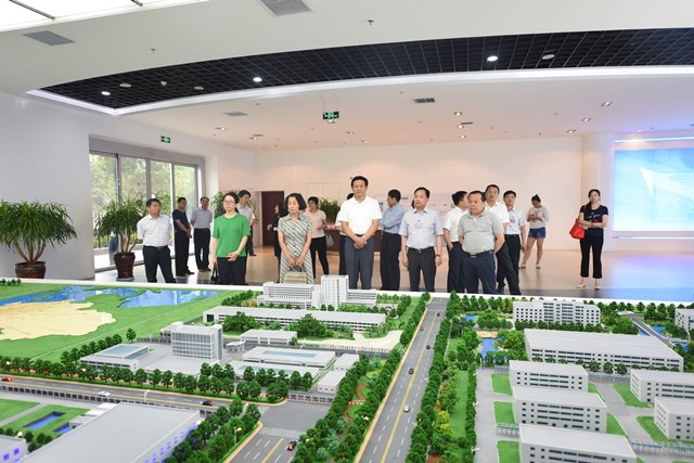 圖為省政協(xié)常委、人口資源環(huán)境委員會(huì)主任、副秘書長(zhǎng)張有興(前排右三)參觀我公司展廳時(shí)的情景