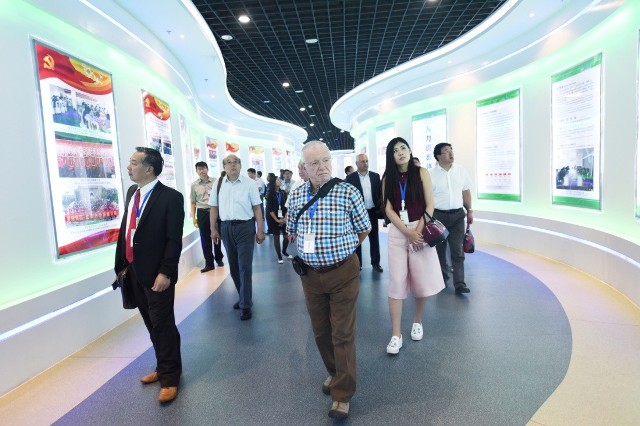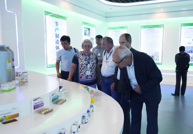 圖為山東傳統醫藥創新發展國際學術研討會與會人員參觀我公司展廳時的情景