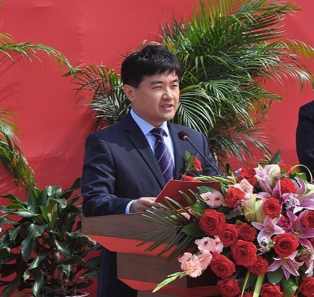 上圖為臨沂三維建設(shè)工程有限公司總經(jīng)理安傳磊表態(tài)發(fā)言時的情景