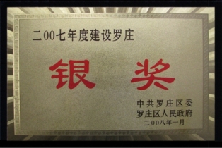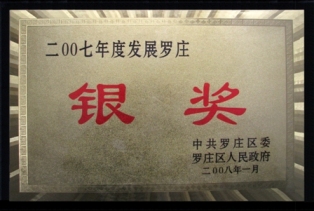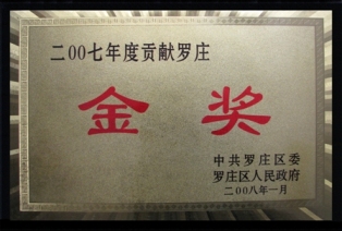 2008年1月,鑒于公司對地方經(jīng)濟發(fā)展做出突出貢獻,山東羅欣藥業(yè)股份有限公司獲得由羅莊區(qū)委、羅莊區(qū)人民政府頒發(fā)的“2007年度貢獻羅莊金獎”、“2007年度建設(shè)羅莊銀獎”、“2007年度發(fā)展羅莊銀獎”及“2007年度科學技術(shù)進步銅獎”等榮譽稱號。