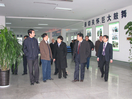 2008年12月4日,臨沂市人大常委會黨組書記、第一副主任朱紹陽(前排右二)、帶領(lǐng)駐臨沂市的全國人大代表和駐市直的部分省、市人大代表一行30余人蒞臨我公司指導(dǎo)工作,羅莊區(qū)委副書記、代區(qū)長劉淑秀(前排右三)、羅莊區(qū)人大常委會主任山長青(前排左一)等領(lǐng)導(dǎo)陪同,觀看了公司介紹剪輯片并參觀了公司展廳,對公司的發(fā)展運(yùn)營情況做了詳細(xì)了解。