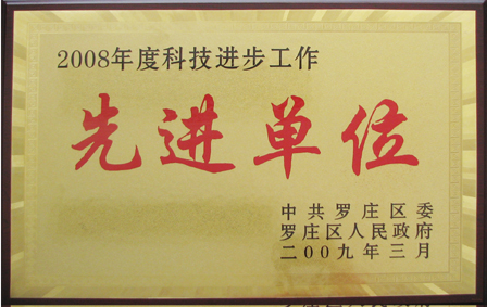 2009年3月,我公司被中共羅莊區(qū)委、羅莊區(qū)人民政府評(píng)為“2008年度科技進(jìn)步工作先進(jìn)單位”榮譽(yù)稱號(hào)。