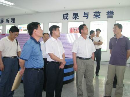 上圖為臨沂市人事局局長密守勇(前排右二)等領導參觀展廳時的情景