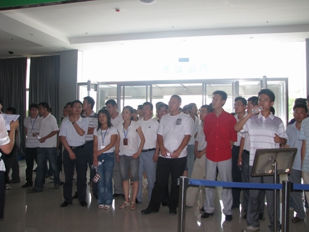 上圖為新入職員工參觀公司倉儲配送中心時的情景