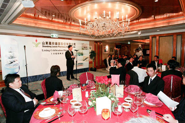 臨沂市副市長、羅莊區區委書記李峰在慶功會上共同舉杯祝賀羅欣藥業的成功上市