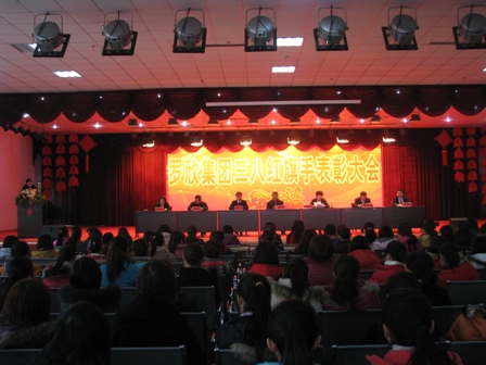 三八紅旗手表彰大會現(xiàn)場 三八紅旗手合影 氣氛熱烈的拔河比賽 搶凳子比賽 三人協(xié)作跑