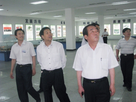 上圖為省史志辦主任劉秋增(前排左三)一行參觀(guān)公司展廳時(shí)的情景