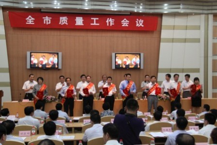 上圖為公司總經(jīng)理李明華女士在“全市質(zhì)量工作大會(huì)”上發(fā)言時(shí)的情景