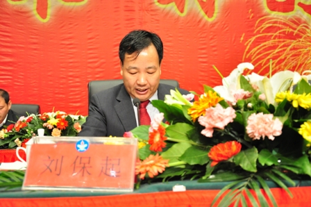 上圖為集團(tuán)董事長、總經(jīng)理劉保起先生作工作報告