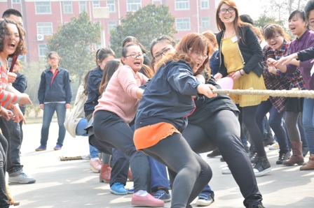上圖為拔河比賽熱火朝天的場面