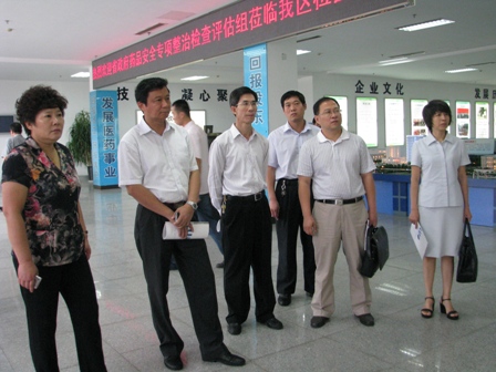 上圖為省政府藥品安全專項整治檢查評估組參觀檢查時的情景