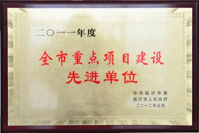 近日,中共臨沂市委、臨沂市人民政府公布了關(guān)于表彰2011年度全市重點(diǎn)項(xiàng)目建設(shè)先進(jìn)區(qū)縣開(kāi)發(fā)區(qū)和先進(jìn)單位的通報(bào),我公司榮獲“2011年度全市重點(diǎn)項(xiàng)目建設(shè)先進(jìn)單位”榮譽(yù)稱號(hào)。
