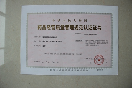 2014年4月29-31日,山東省食品藥品監(jiān)督管理局藥品審評(píng)認(rèn)證中心,對(duì)我公司進(jìn)行了為期三天的GSP認(rèn)證現(xiàn)場(chǎng)檢查,我公司一次性順利通過GSP現(xiàn)場(chǎng)檢查認(rèn)證,5月24日正式取得認(rèn)證證書。