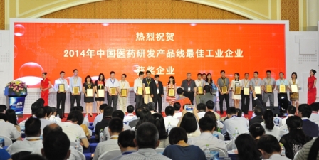 上圖為2014年中國醫藥研發產品線最佳工業企業頒獎現場