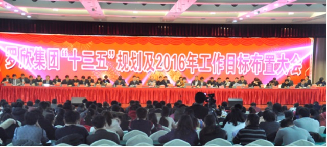 圖為羅欣集團“十三五”規(guī)劃及2016年工作目標布置大會隆重召開時的情景